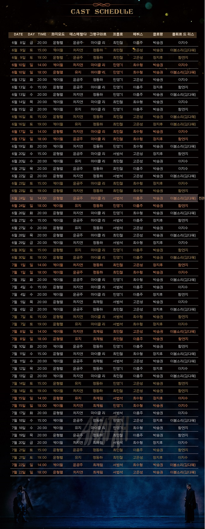 [한국어버전 10주년] 3차 티켓오픈 캐스팅 스케줄 티켓오픈 : 5월 11일 금요일 오후 2시오픈 회차 : 7.3(화) ~ 7.22(일)예매처 : 인터파크, 세종문화회관뮤지컬 노트르담 드 파리 - 한국어버전 10주년2018. 6. 8 ~ 8.5 세종문화회관 대극장 글목록